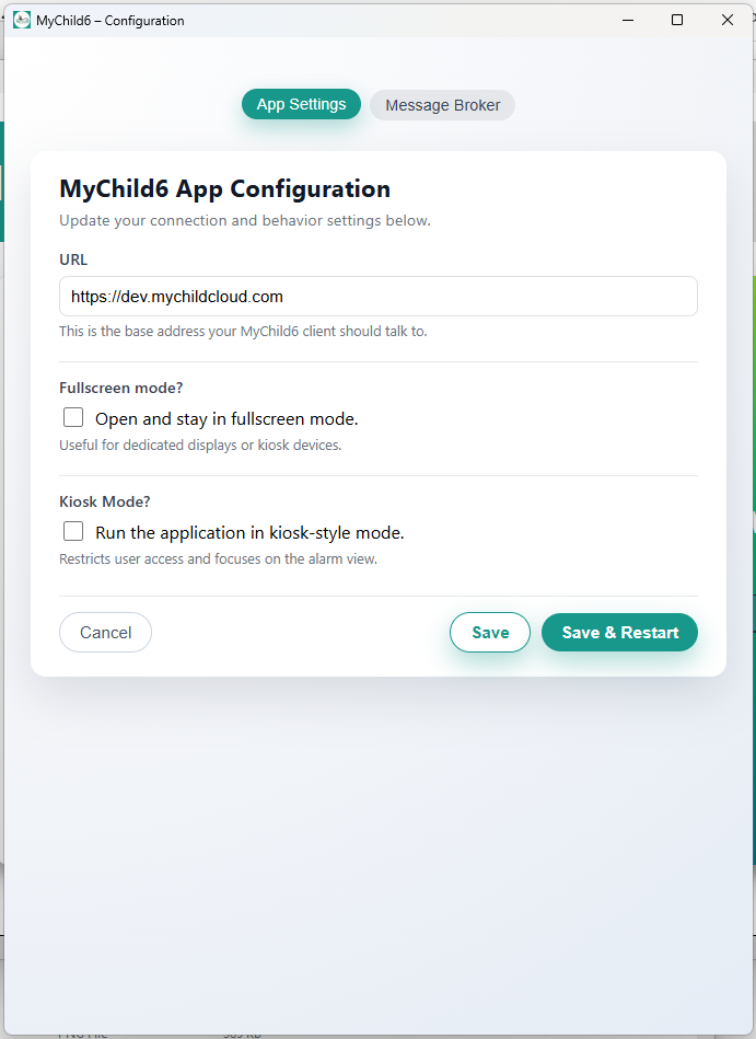 MyChild6 Desktop App Configuration